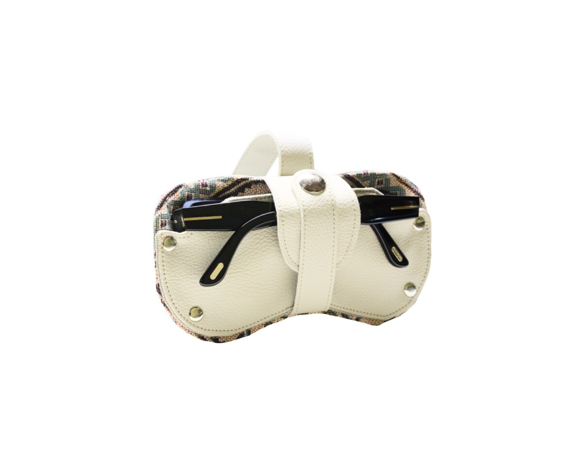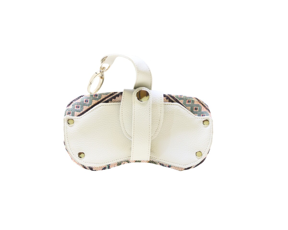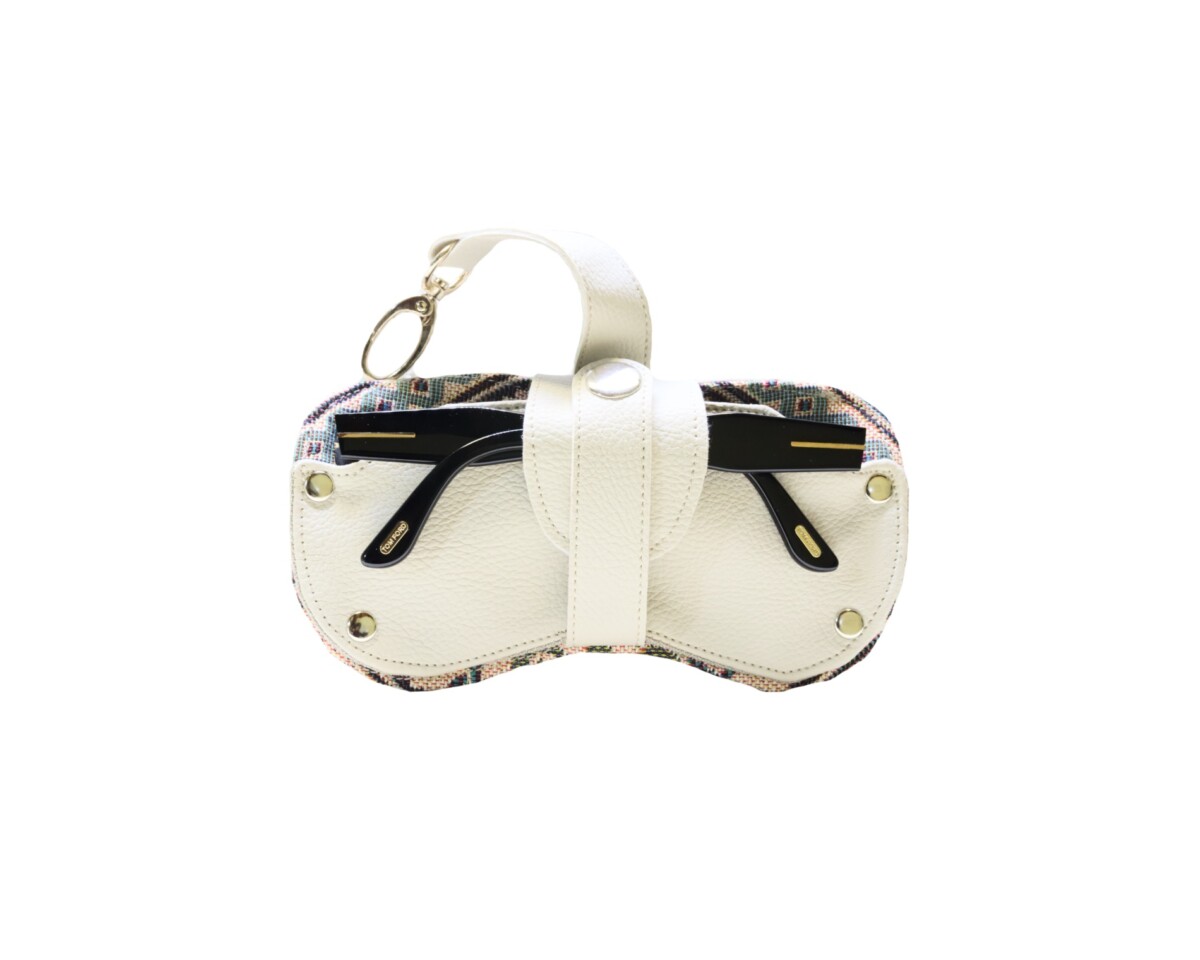 Portaocchiali in ecopelle con chiusura a bottone Interno in tessuto broccato sardo Gancio portachiavi Prodotto artigianale Fatto in Italia