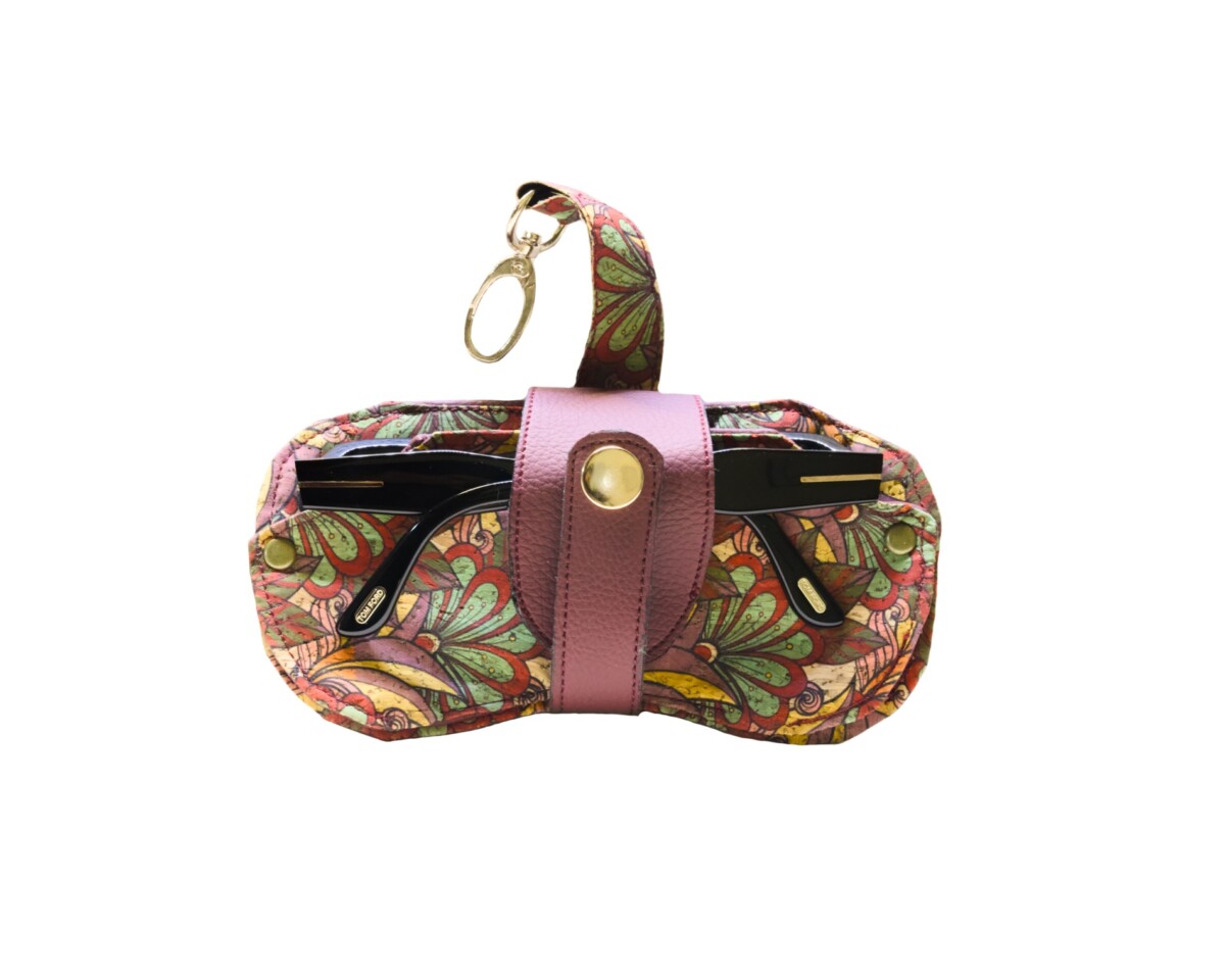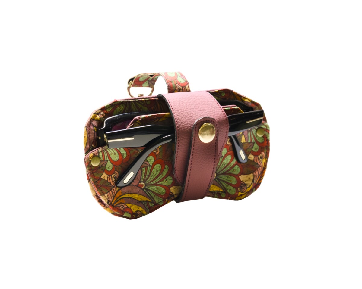 Portaocchiali in ecopelle e sughero con chiusura a bottone