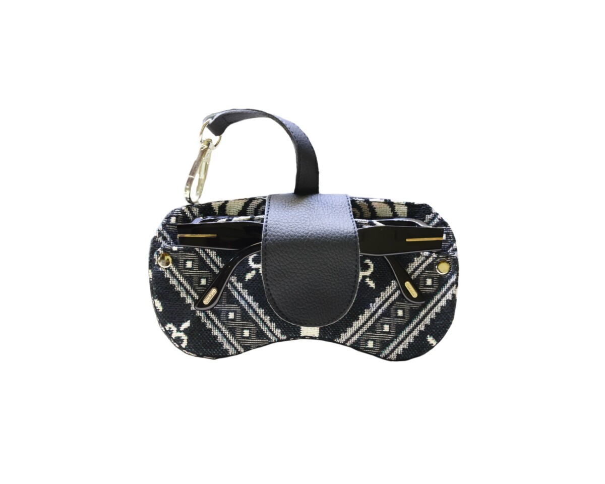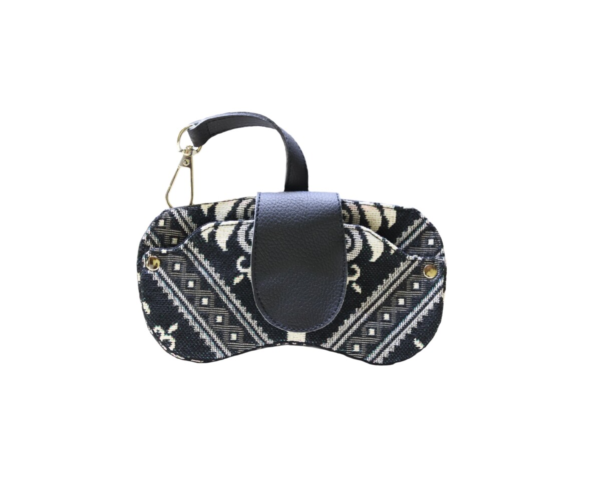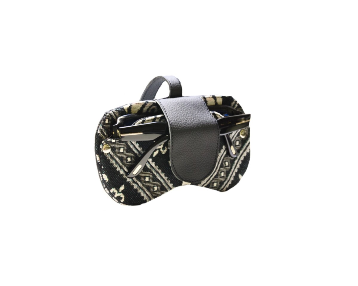 Portaocchiali in tessuto broccato sardo ed ecopelle con chiusura a bottone