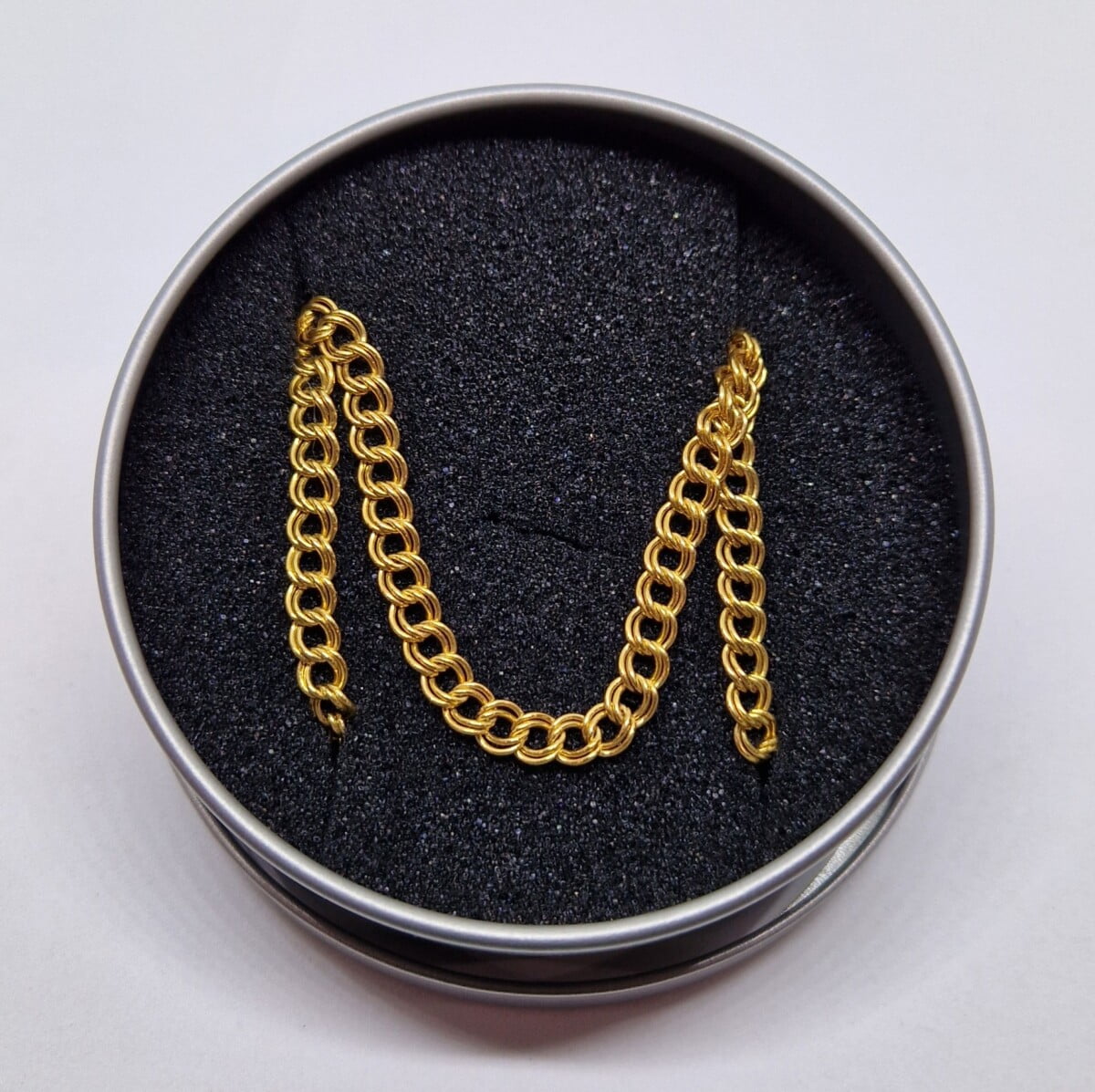 Catenella oro in metallo anallergico. Può essere utilizzata anche come collana o bracciale.
