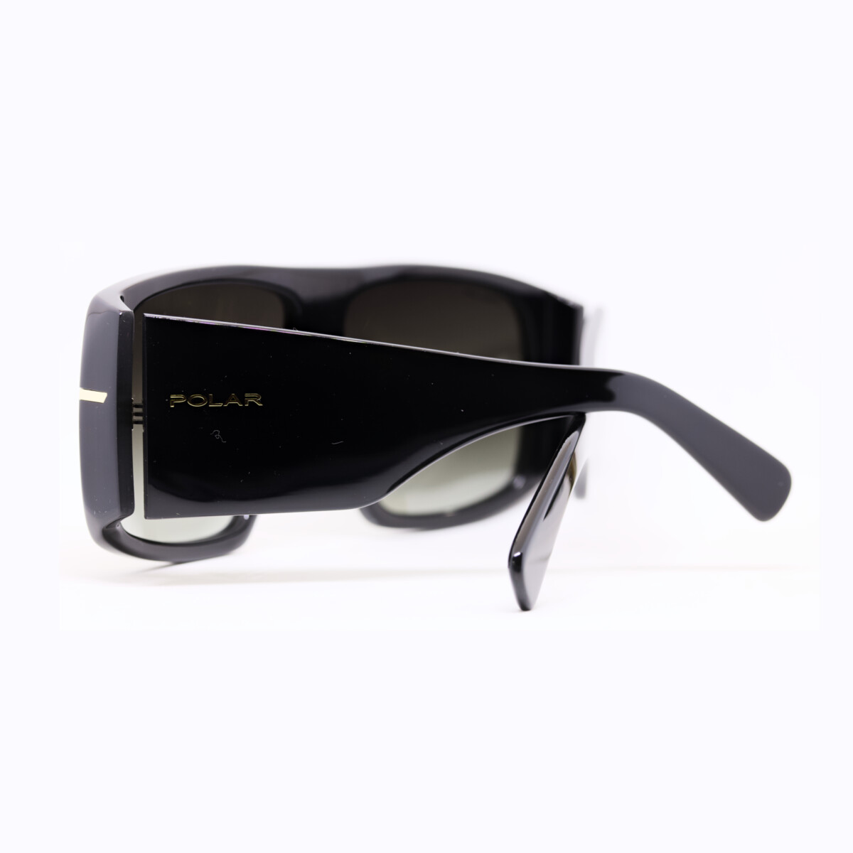 Mascherina da sole ampia polarizzata unisex in acetato con asta larga.