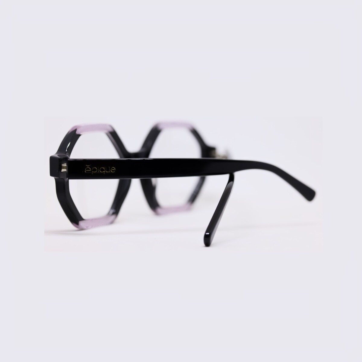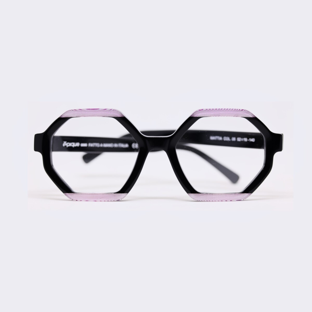 Montatura da vista caratterizzata da una silhouette  esagonale sofisticata  e dall’animo vintage, perfetta sia da donna che da uomo. Caratterizzata dalla seta inserita nell’acetato