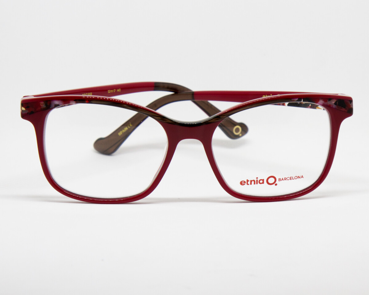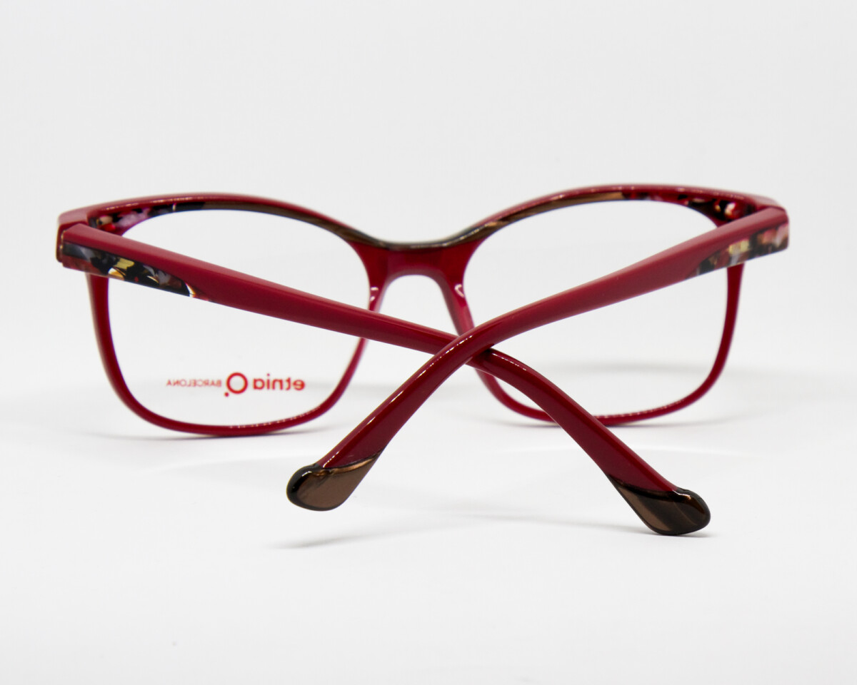 Occhiale da vista rettangolare da donna in acetato Calibro 52, ponte 17, lunghezza aste 140 Colore: RDBR – rosso, marrone Asta flex Estremamente resistente e 100% riciclabile.