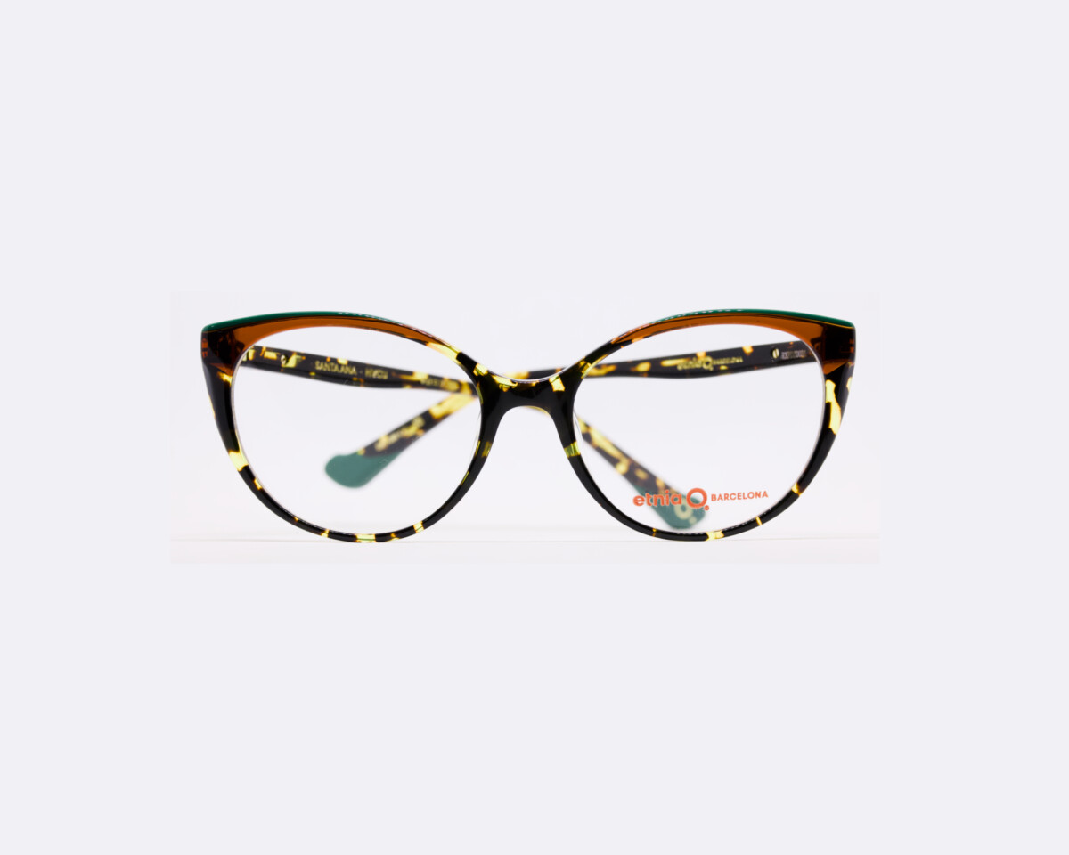 Occhiale da vista da donna cat-eye/butterfly in acetato Calibro 52, ponte 17, lunghezza aste 140 Colore HVCU – havana con inserti verdi Asta flessibile a palettina Estremamente resistente e 100% riciclabile.