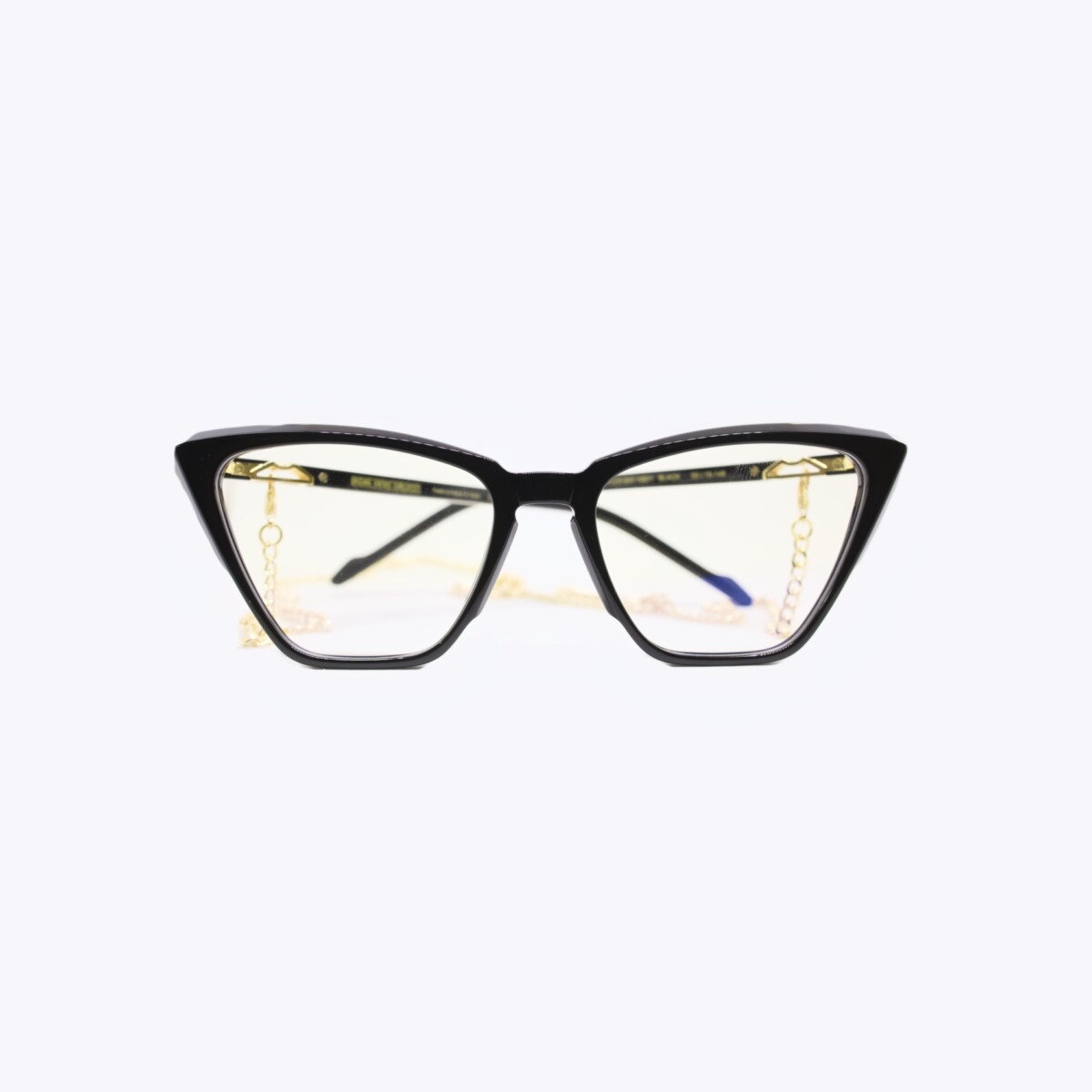Occhiale da vista da donna ‘cat eye’ in acetato con catenina abbinata Calibro 55, ponte 18 lunghezza aste 148 Asta fissa Prodotto fatto a mano in Italia Elegante e affascinante, questo modello dal design iconico si caratterizza per il frontale spigoloso e scultoreo, e per le aste con il logo portacatena arricchite da anima cesellata a vista.