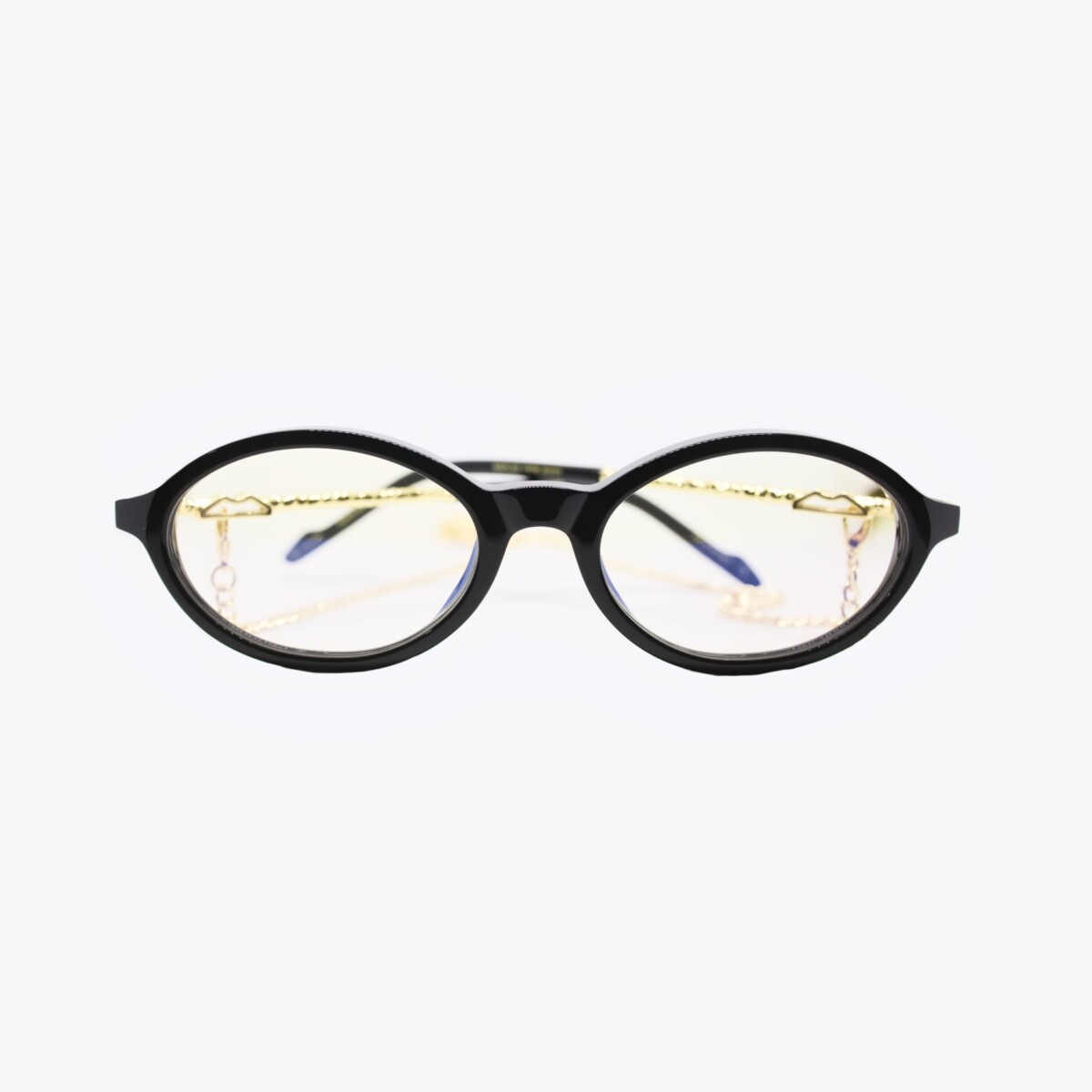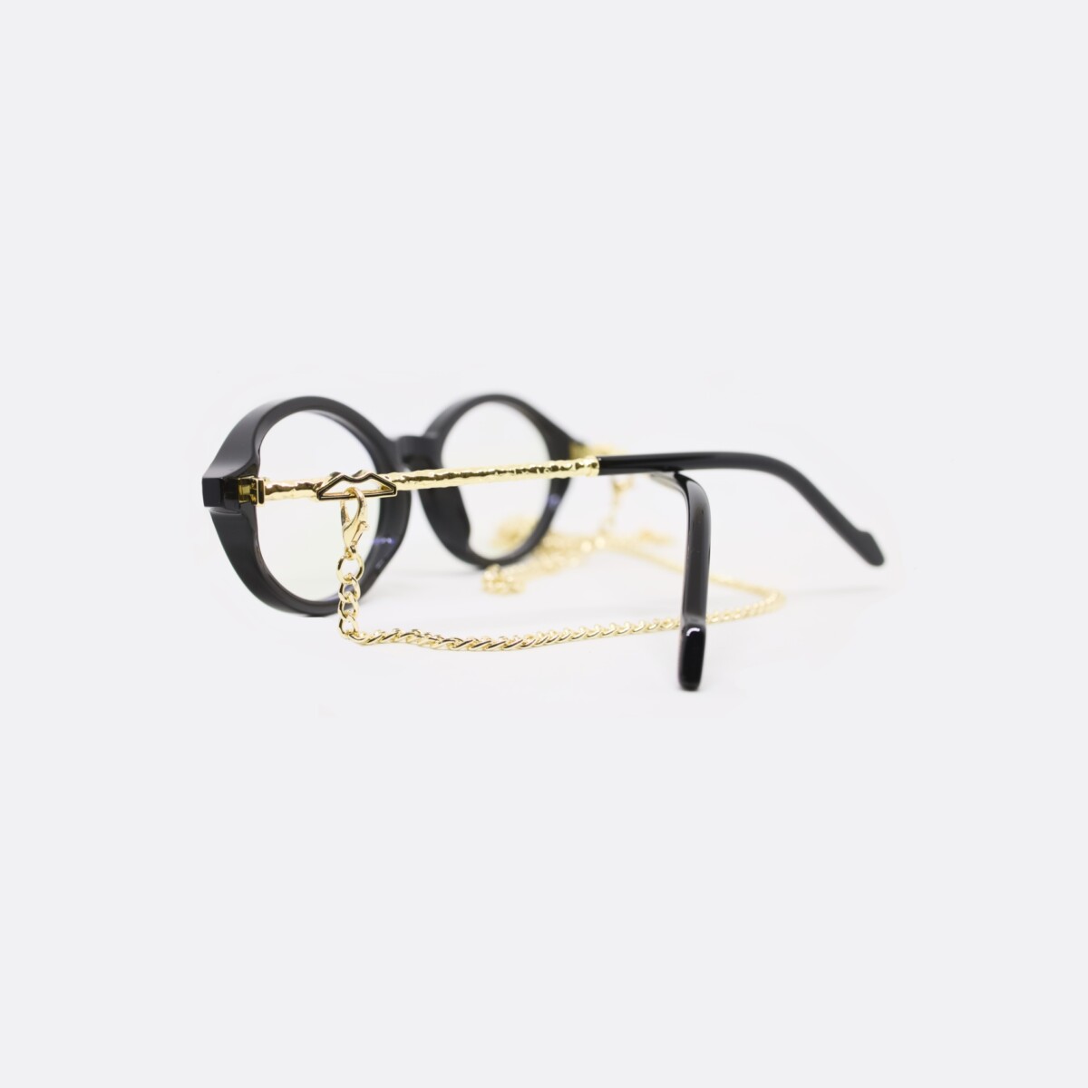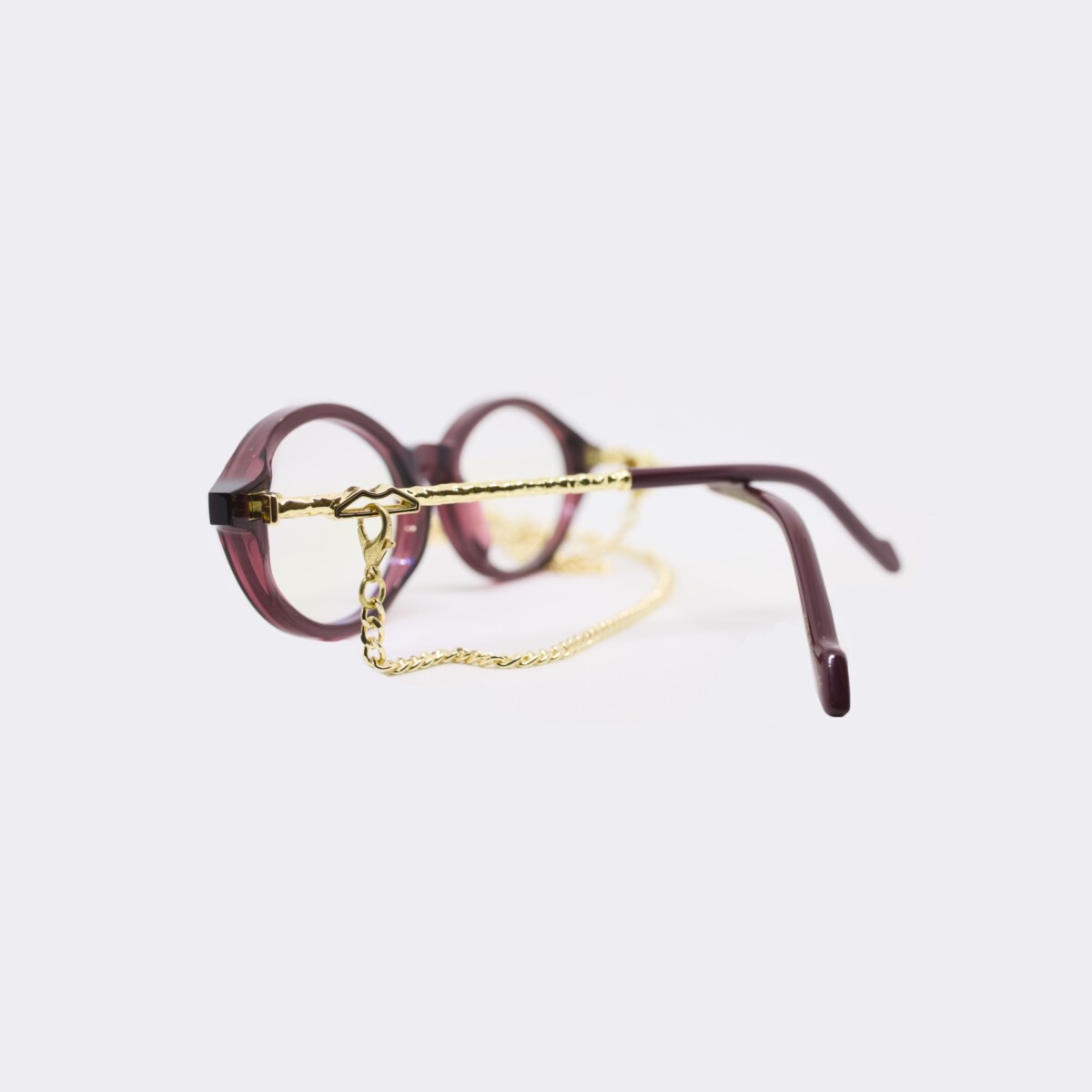 Occhiale da vista da donna ovale in acetato e metallo con catenina abbinata